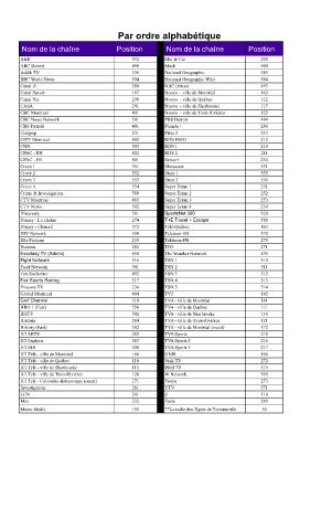Nom de la chaîne Position Nom de la chaîne Position