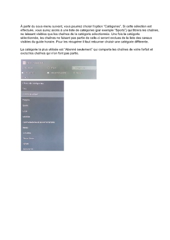 effectuée, vous aurez accès à une liste de catégories (par exemple “Sports”) qui filtrera les chaînes,
