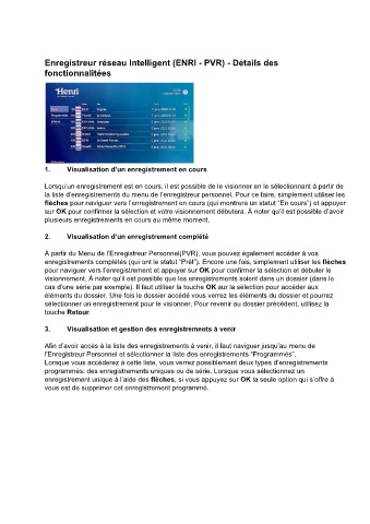 Enregistreur réseau Intelligent (ENRI - PVR) - Détails des