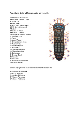 Fonctions de la télécommande universelle.
