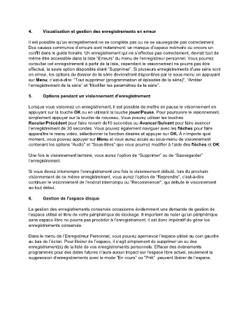 même être accessible dans la liste “Erreurs” du menu de l’enregistreur personnel. Vous pourrez