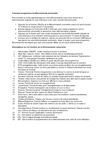 bas gauche de votre télécommande universelle. Ainsi, le bouton voulu sera programmé.
