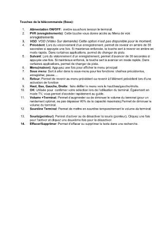 7. Sous menu: Sert à aller dans le sous-menu pour les fonctions :chaînes précédentes,
